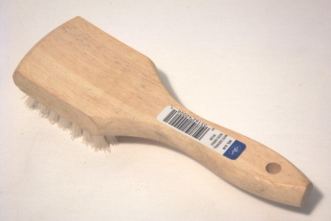 8" Nylon Tire Brush. White Bristles with Wood Handle.