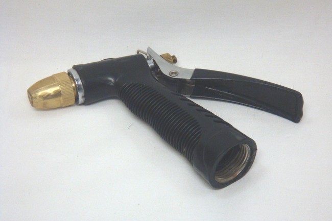 Water Nozzle or Sprayer with Black Rubber Handle. Heavy Duty Rubber Insulation.